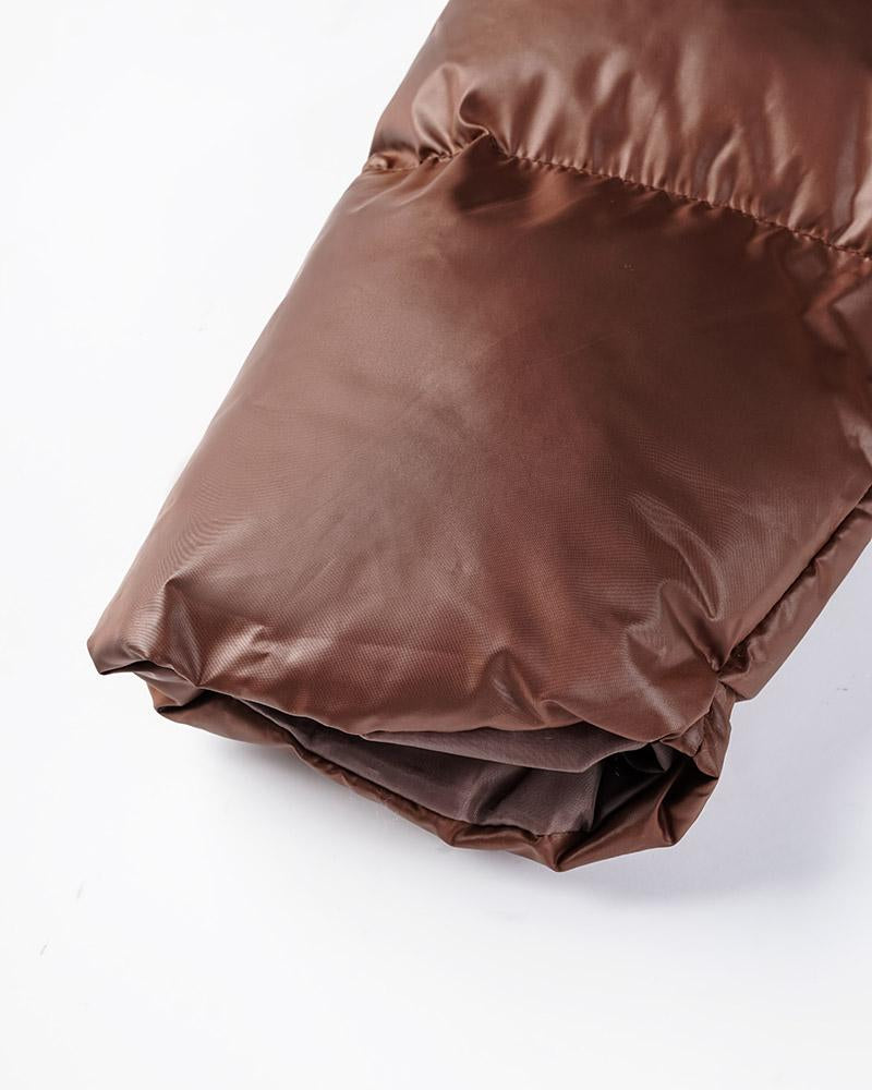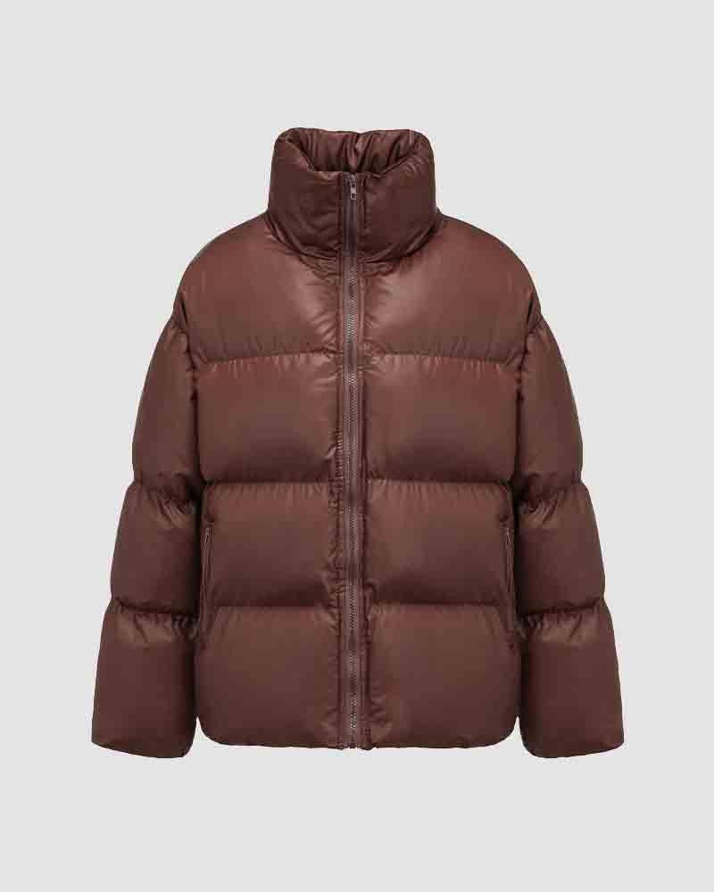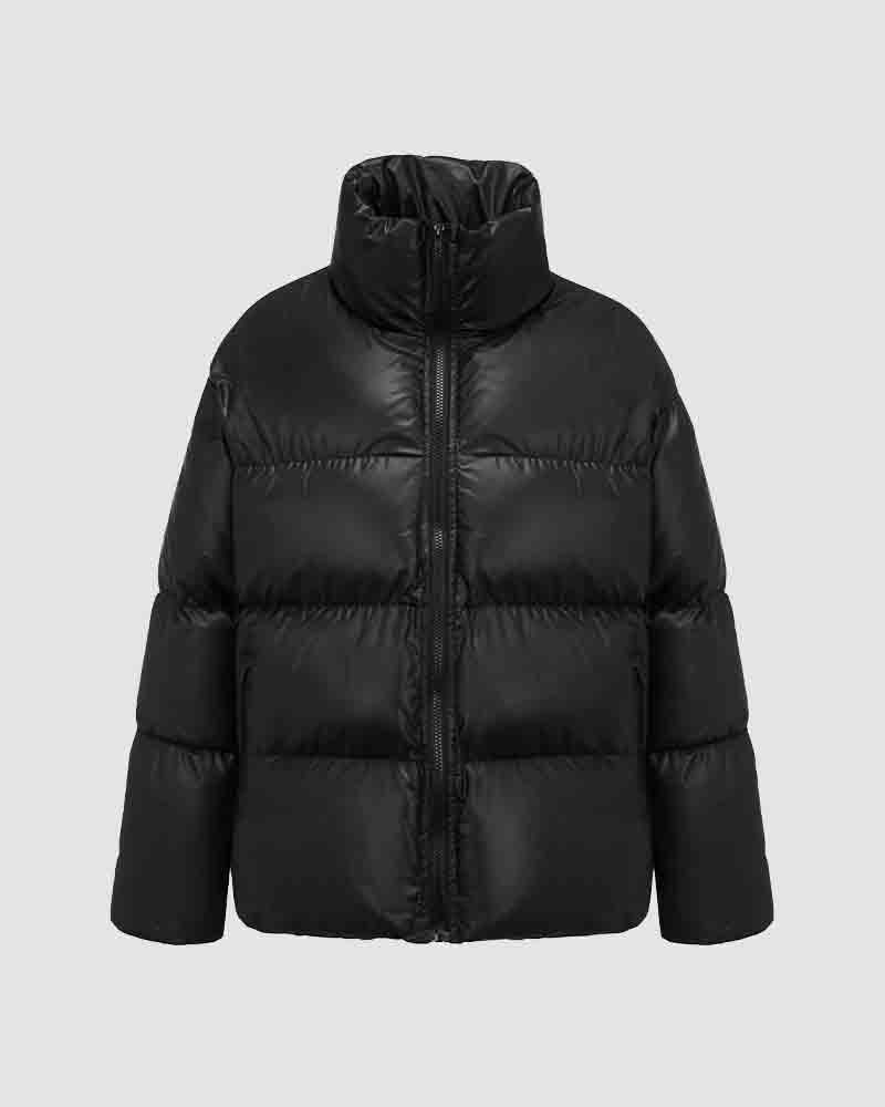 Details: Long-sleeve puffer jacket with front zip design