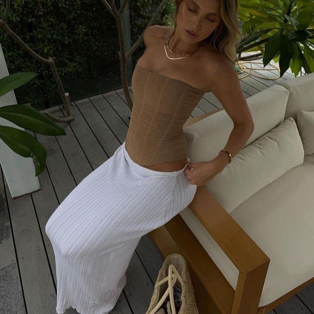 The Amara Long Knit Cotton Skirt is a perfect blend of comfort and style. Crafted from high-quality cotton. this skirt offers a soft and breathable feel. The long knit cotton skirt is ideal for any occasion. from casual outings to special events. Its versatile design ensures it pairs well with a variety of tops and accessories. Moreover. this skirt features an elastic waistband. providing a comfortable and adjustable fit. Its flowing silhouette enhances your natural elegance. while the knit texture adds a unique touch. Additionally. the skirt is easy to care for. making it a practical choice for your wardrobe. It comes in various sizes. ensuring a perfect fit for everyone. This skirt is not just a piece of clothing; it's an expression of your style. Embrace the comfort and elegance of the long knit cotton skirt and make it a staple in your collection.