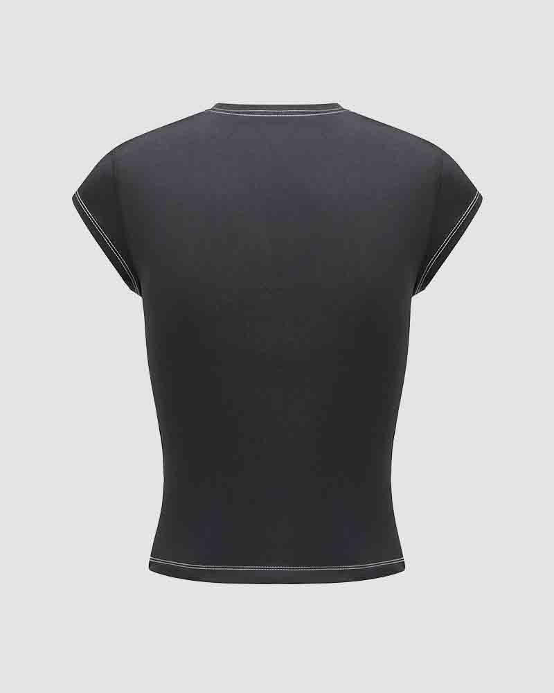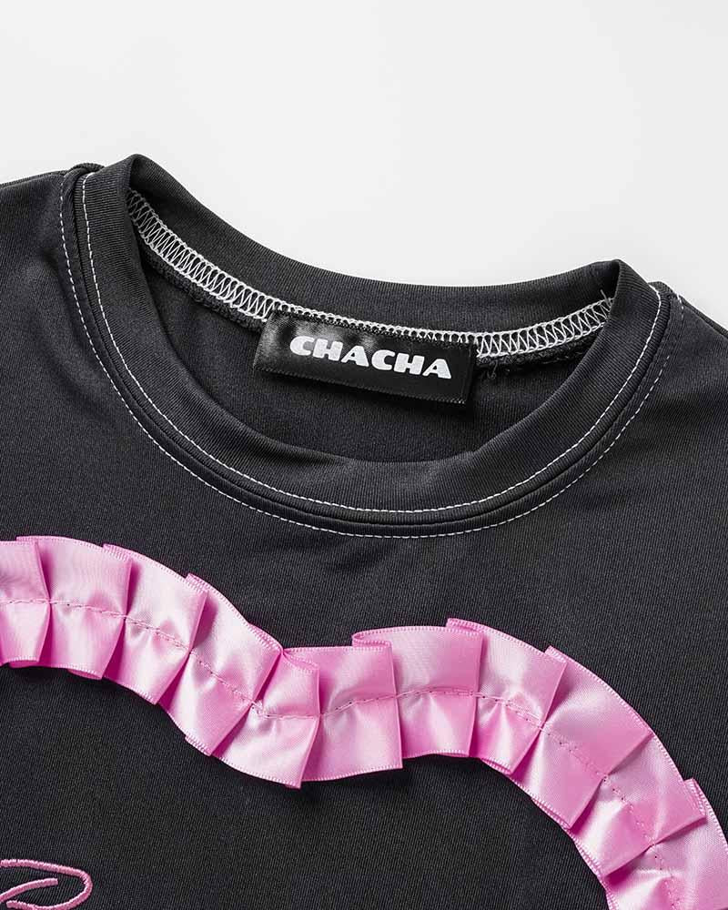 Details: Short-sleeve T-shirt with front heart-shape design and letter print