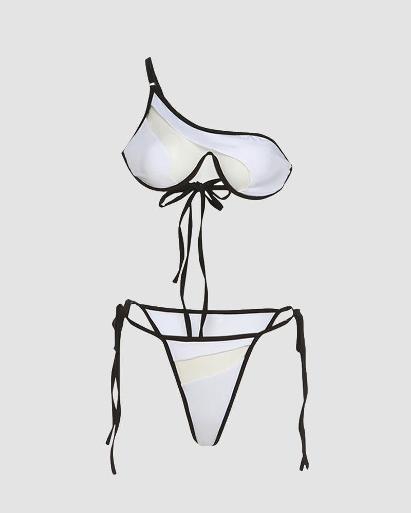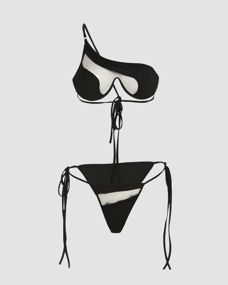 Details: Cut-out Bikini set with asymmetrical shoulder design