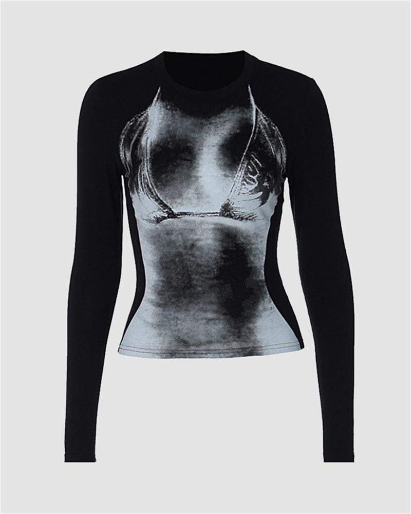 Body Print Crew Neck Long-Sleeve T-Shirt