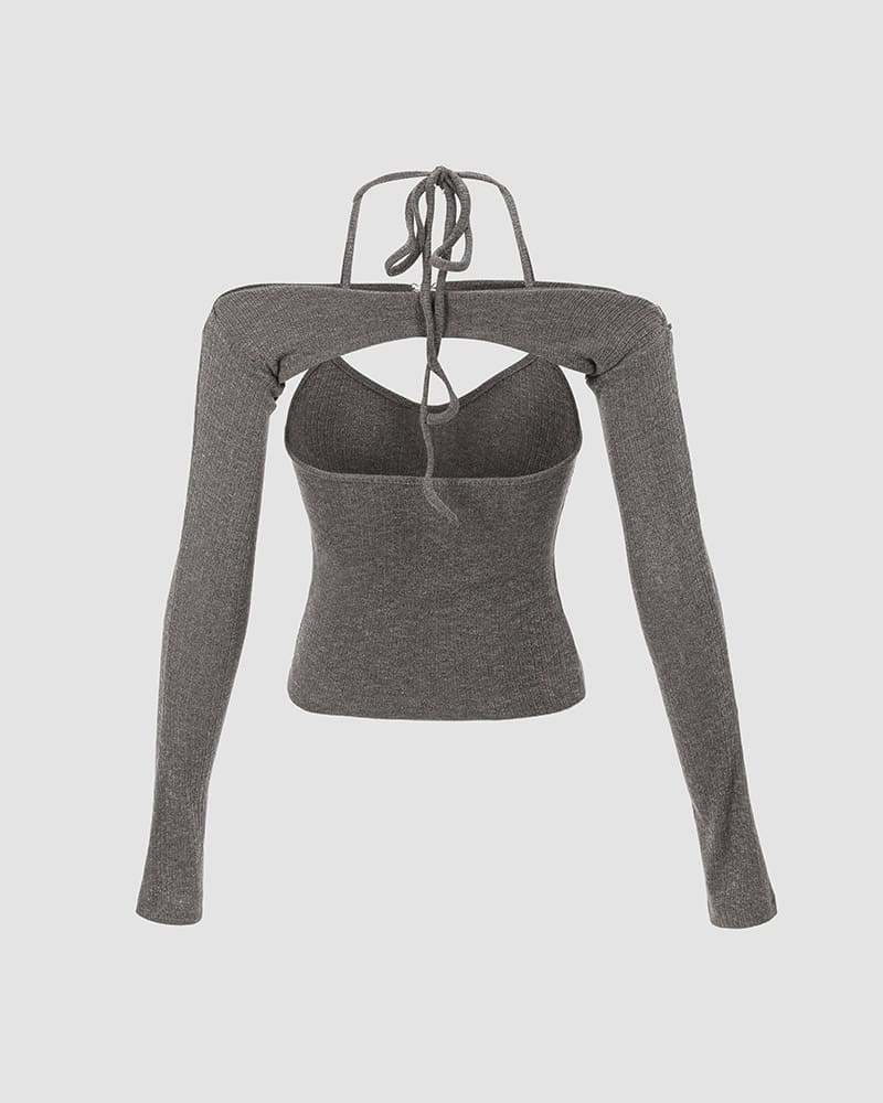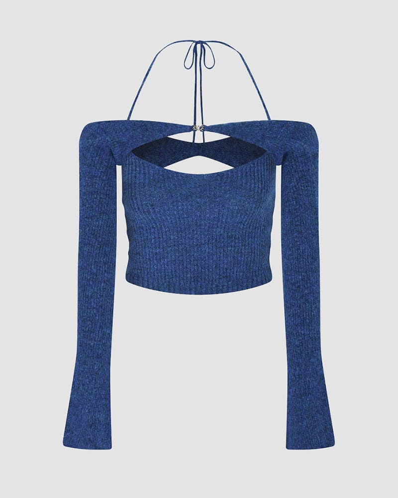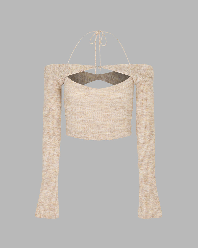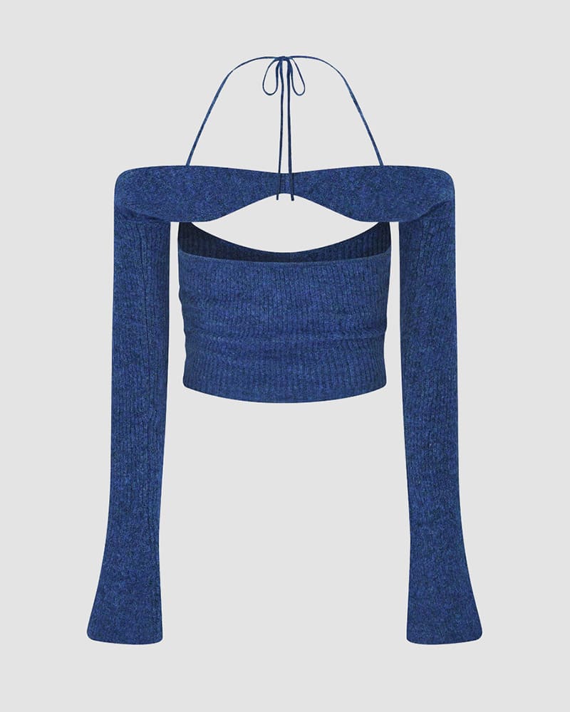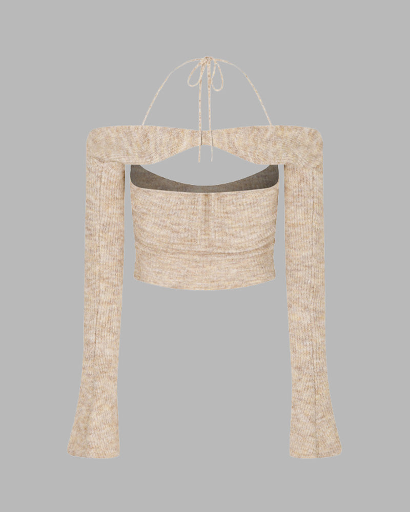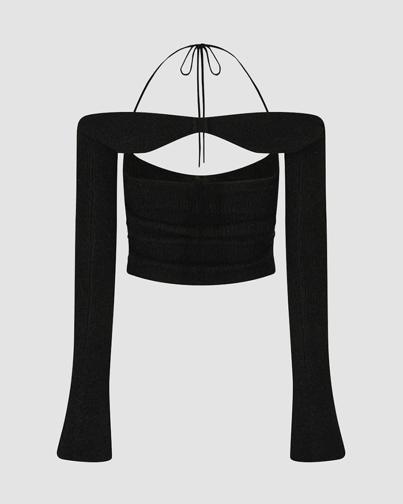 Product Details: Halter top with clip detail and long sleeves