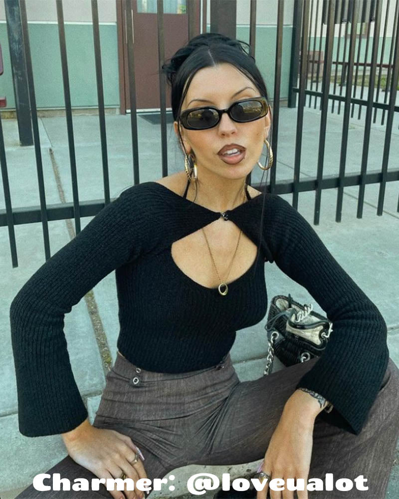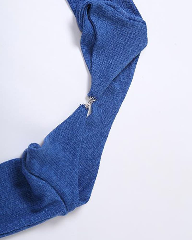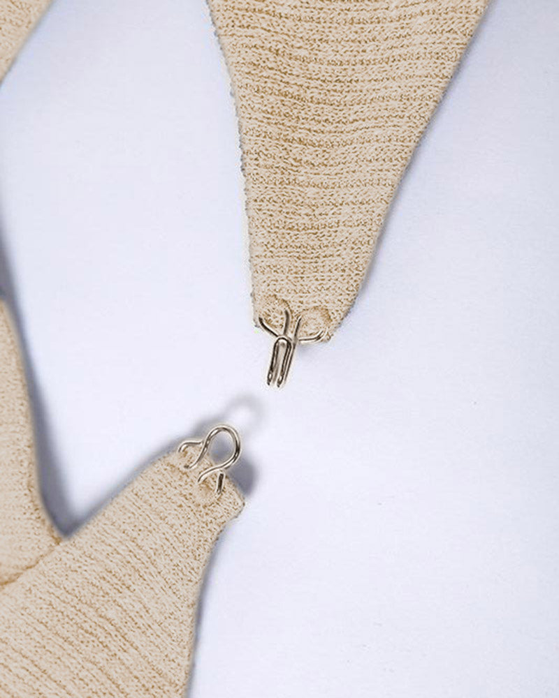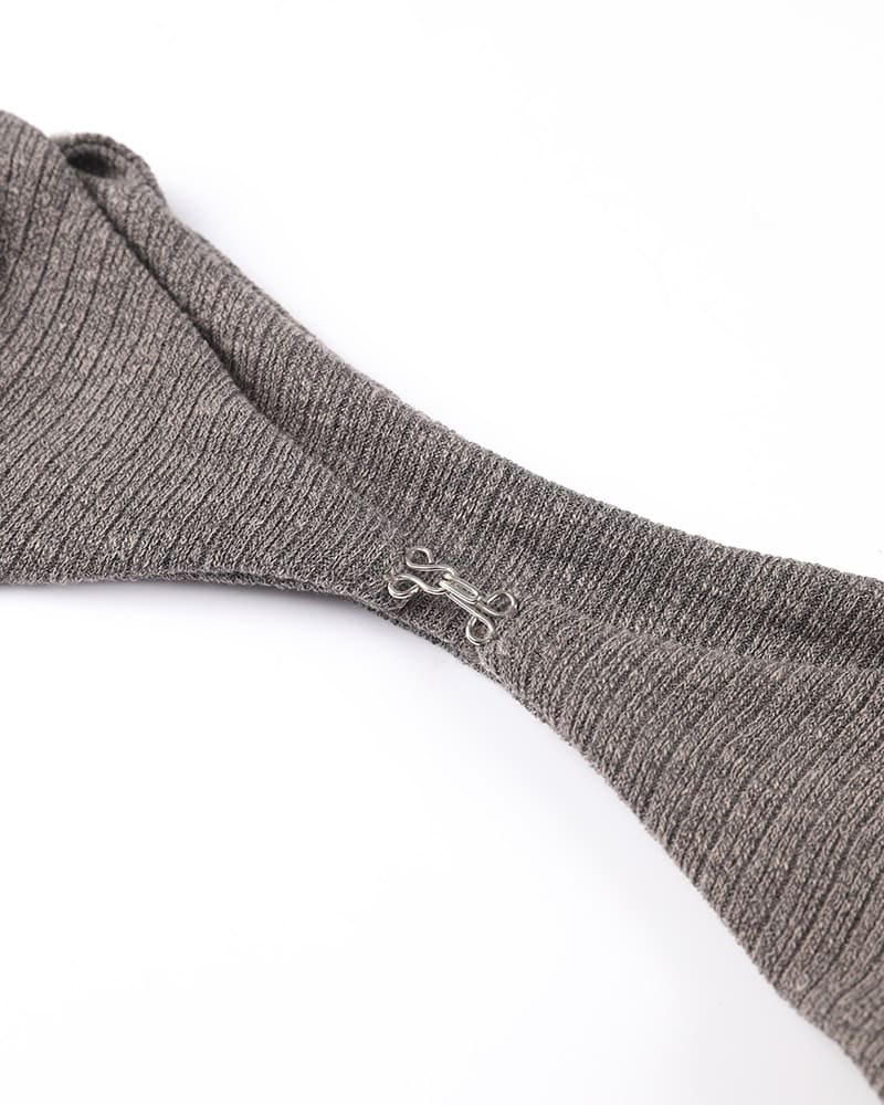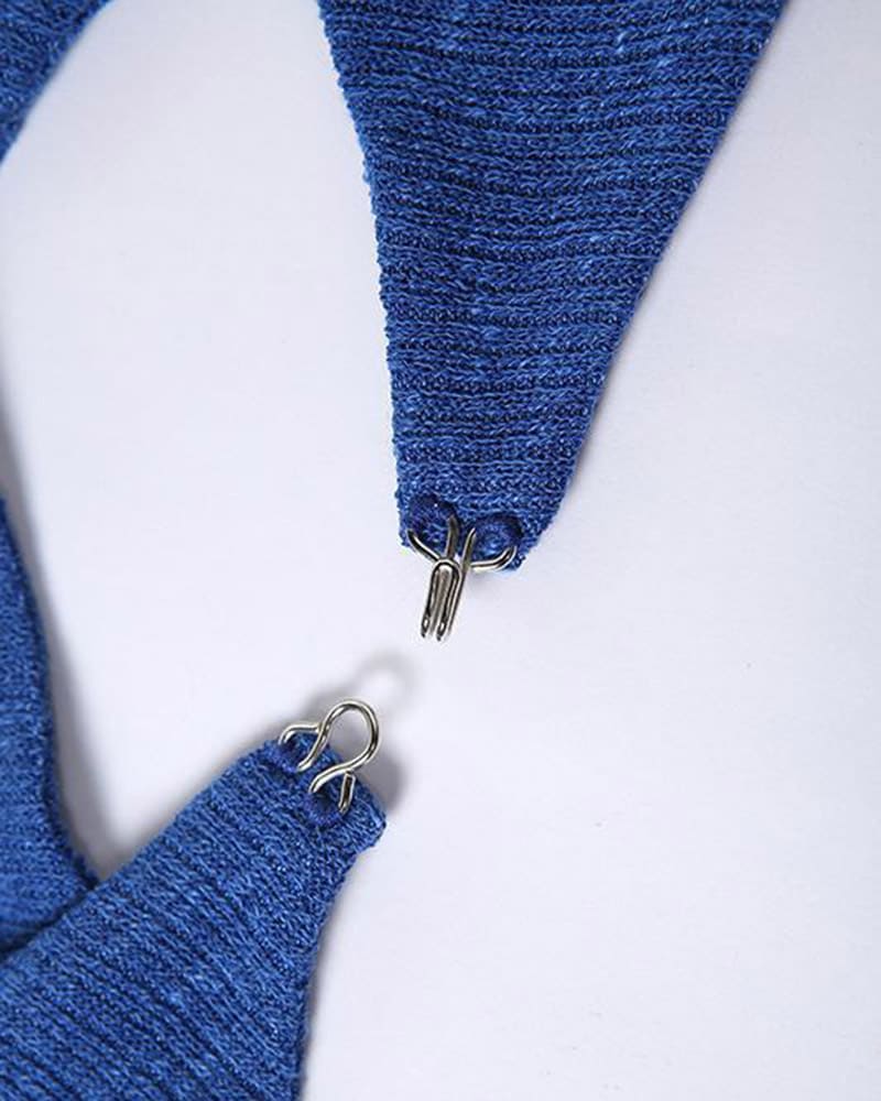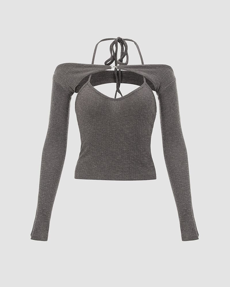 Product Details: Halter top with clip detail and long sleeves