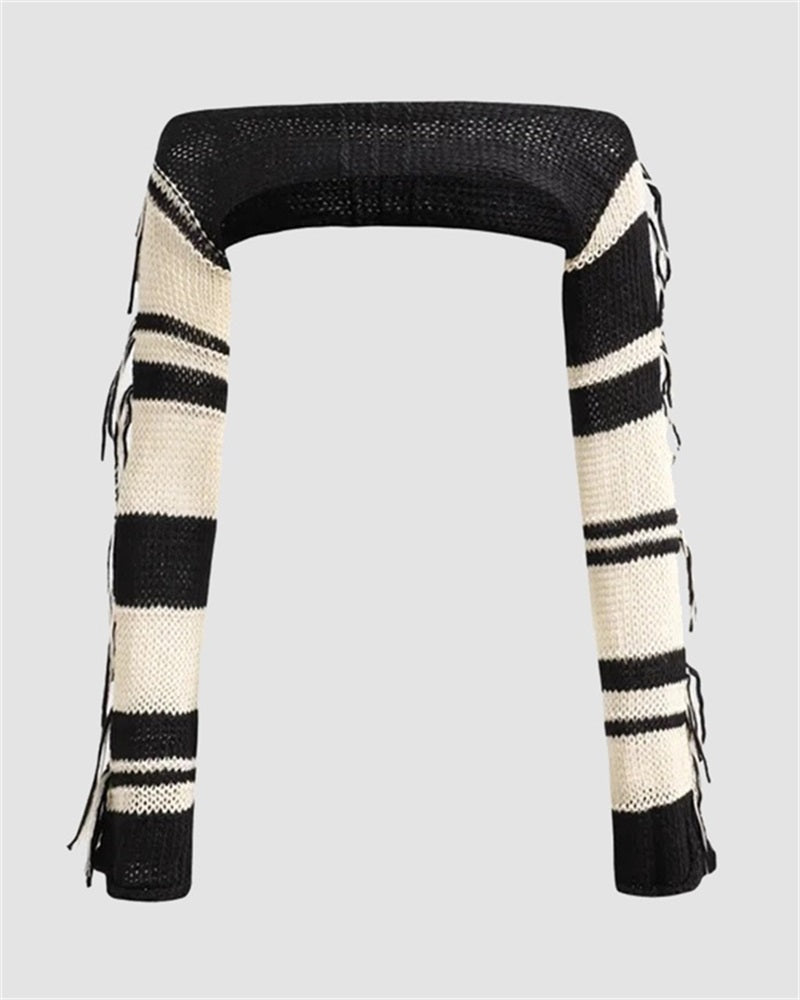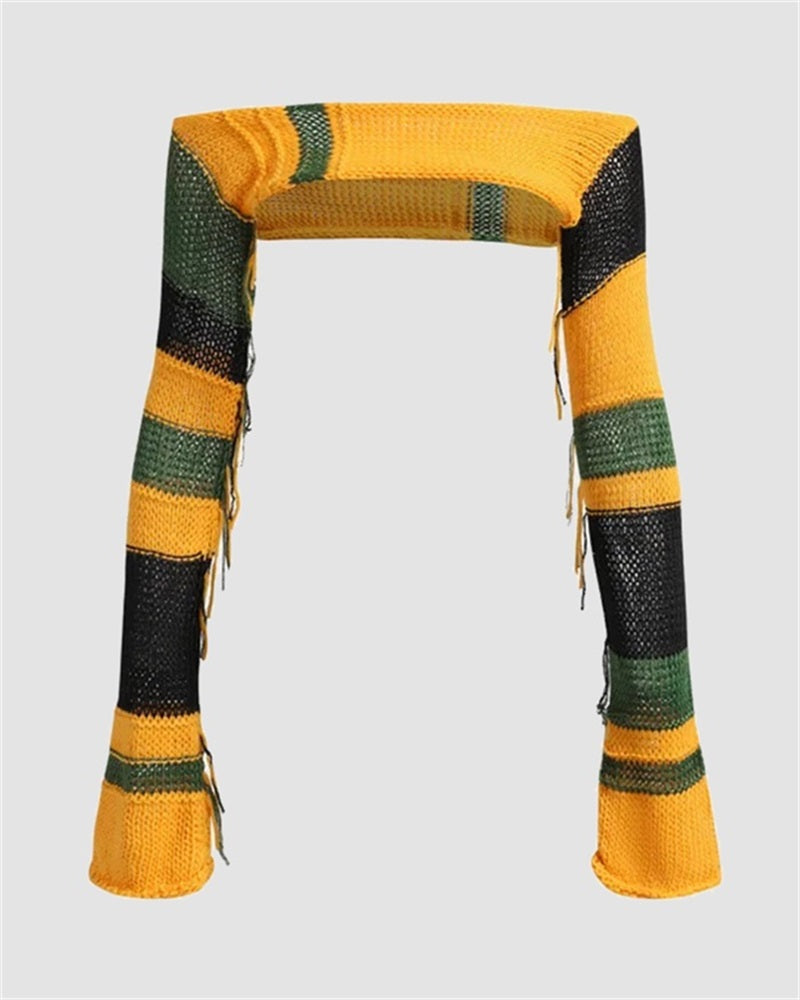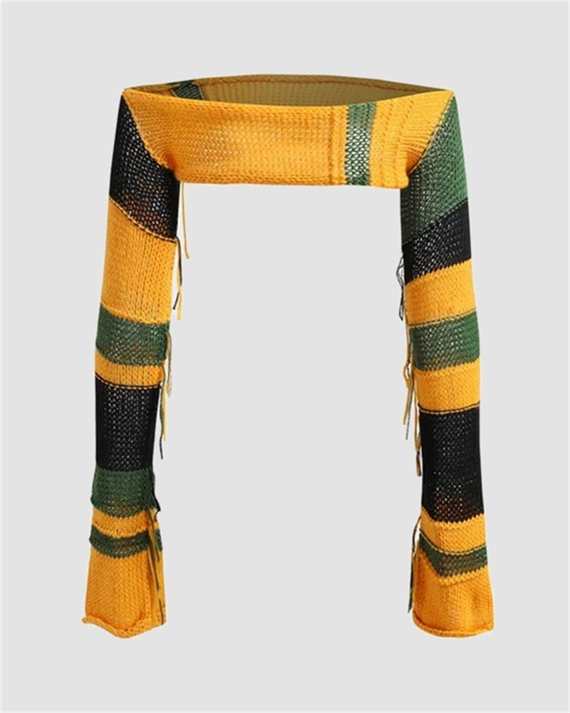 Details: Knitted crochet long-sleeve crop top