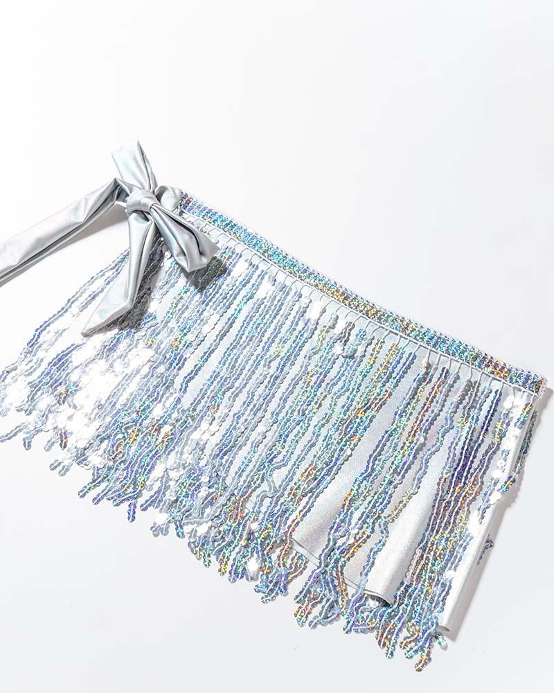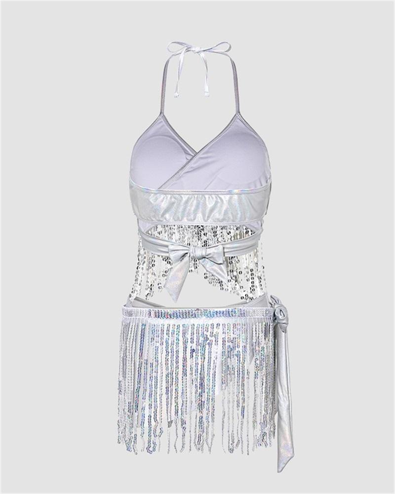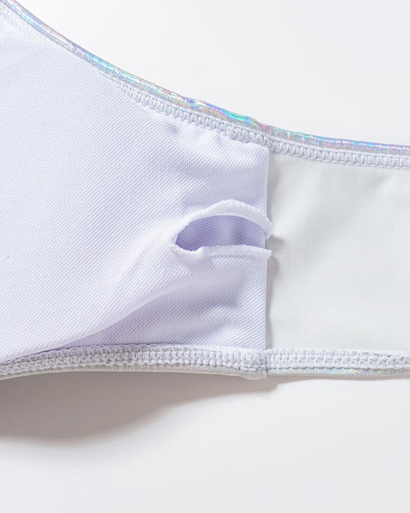 Details: Bikini coord set with glimmering design. coming with bralet and underwear