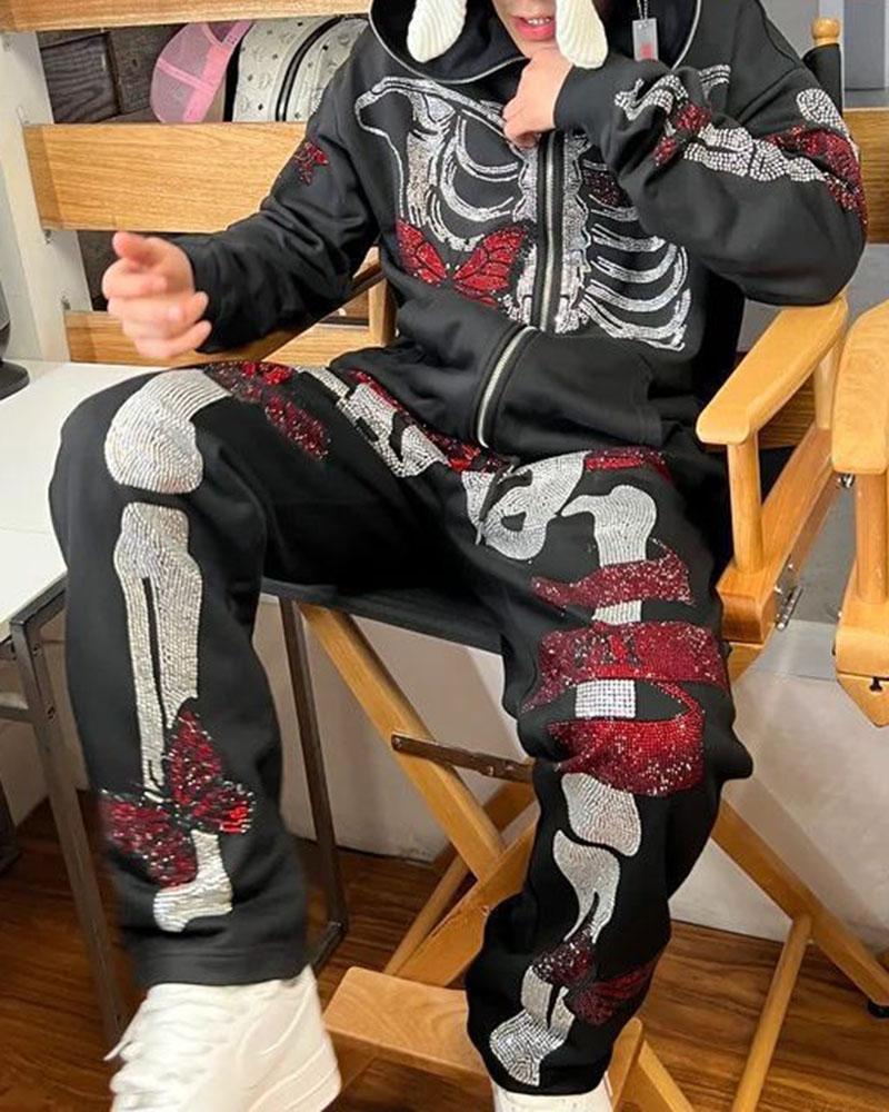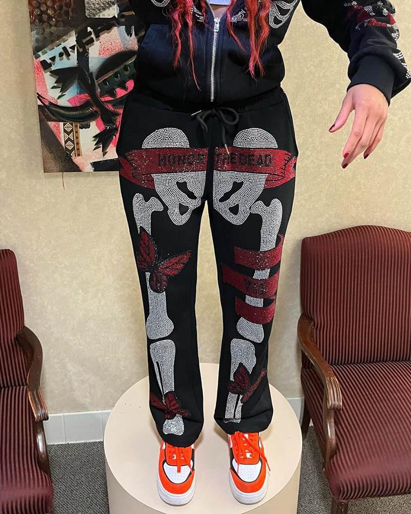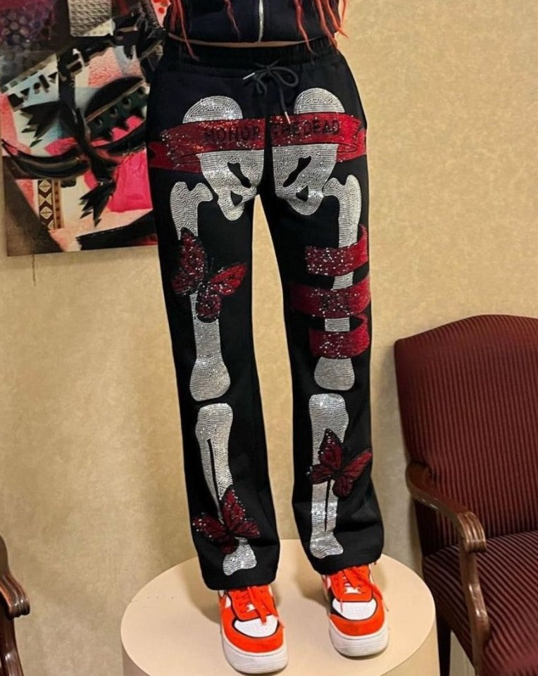 Halloween Skull Rhinestones Pants