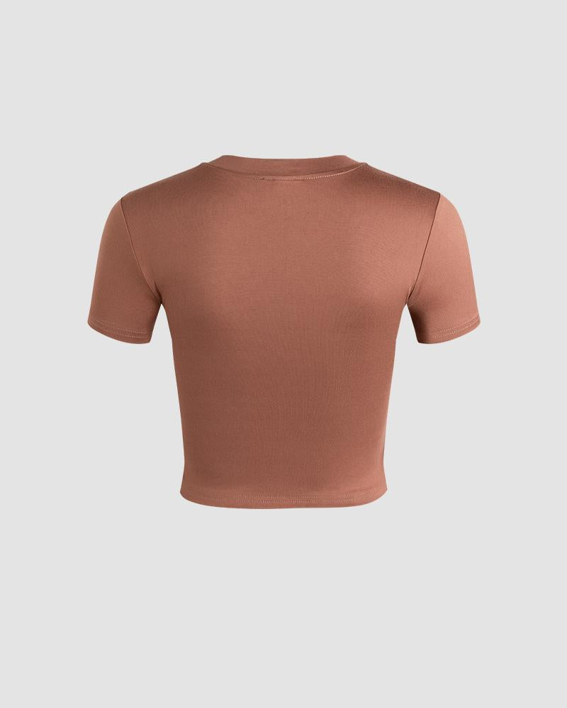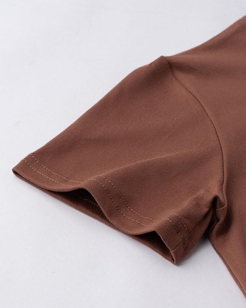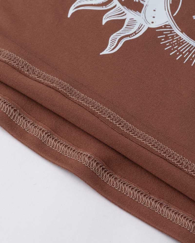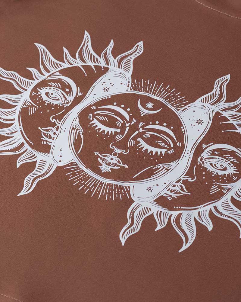 Details: Brown T-shirt with sun graphical print