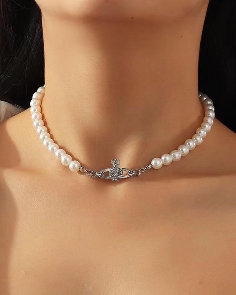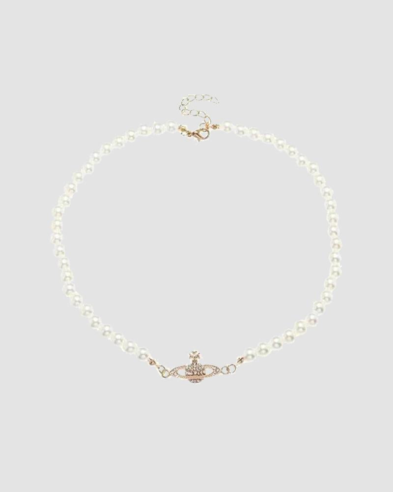 Details: Necklace with pearl beads and Jupiter metalic design