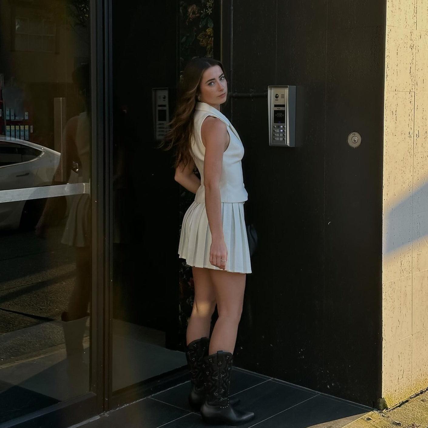 For a complete look. pair it with our Stefanie Oversized Diamond Bow Heels. adding an extra touch of elegance to your ensemble. These heels perfectly complement the set. making your outfit even more stunning.