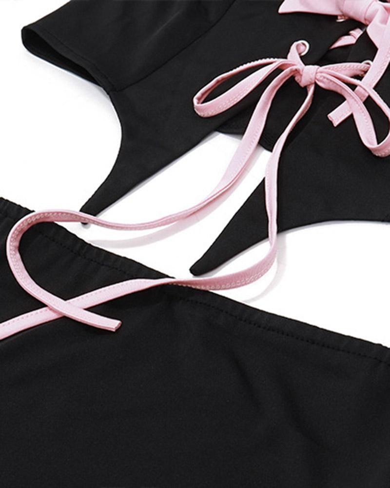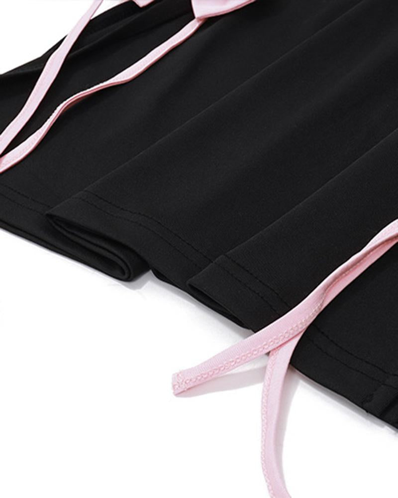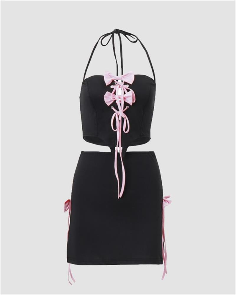 Details: Coord set with pink bow-tie design. coming with halter top and skirt