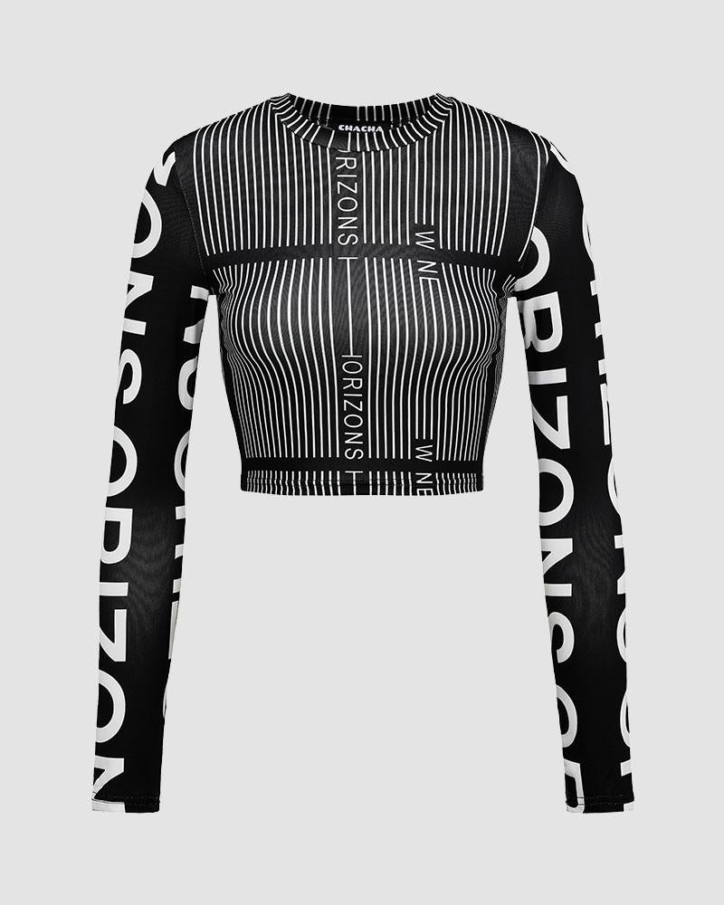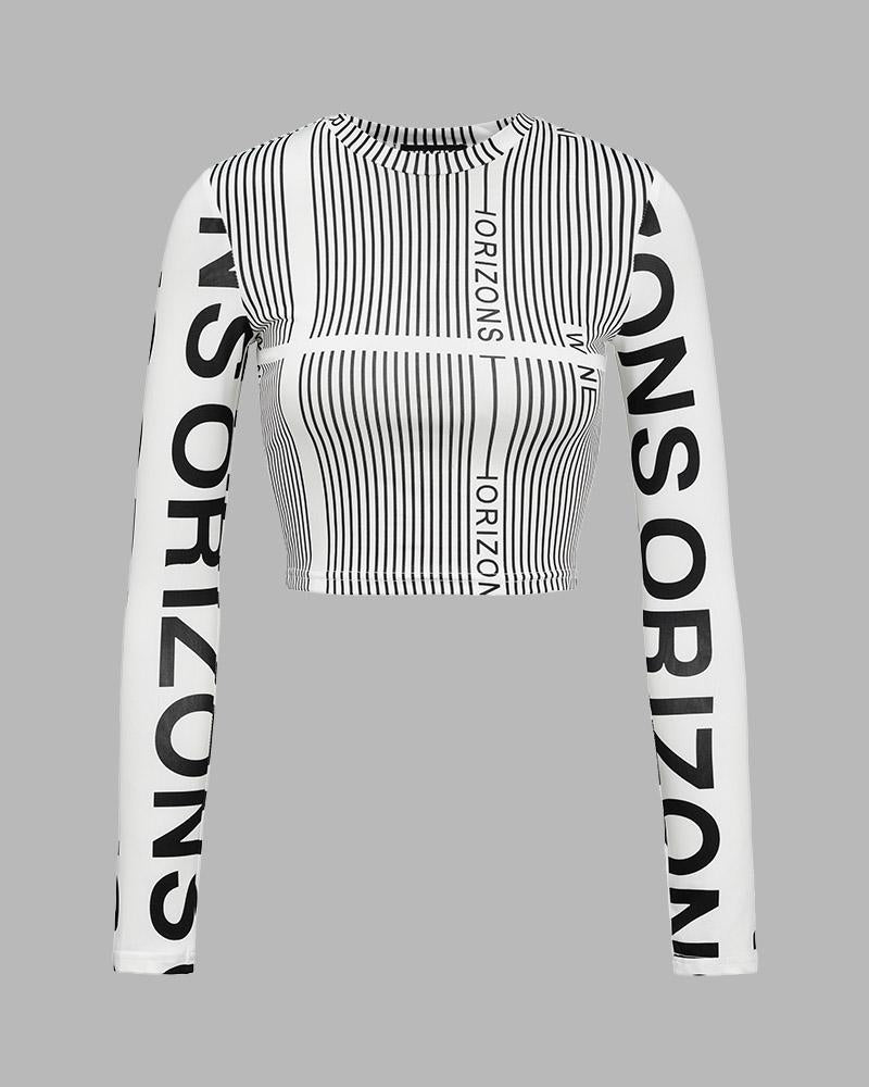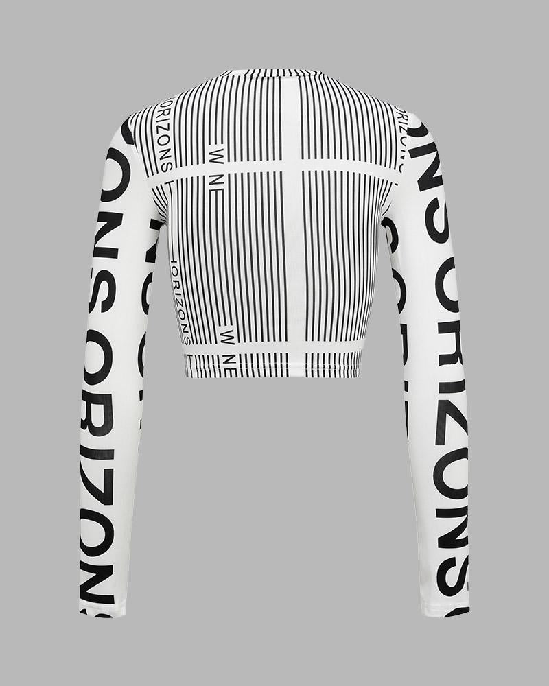 Details: Long-sleeve crop top with zebra stripes and letter print design