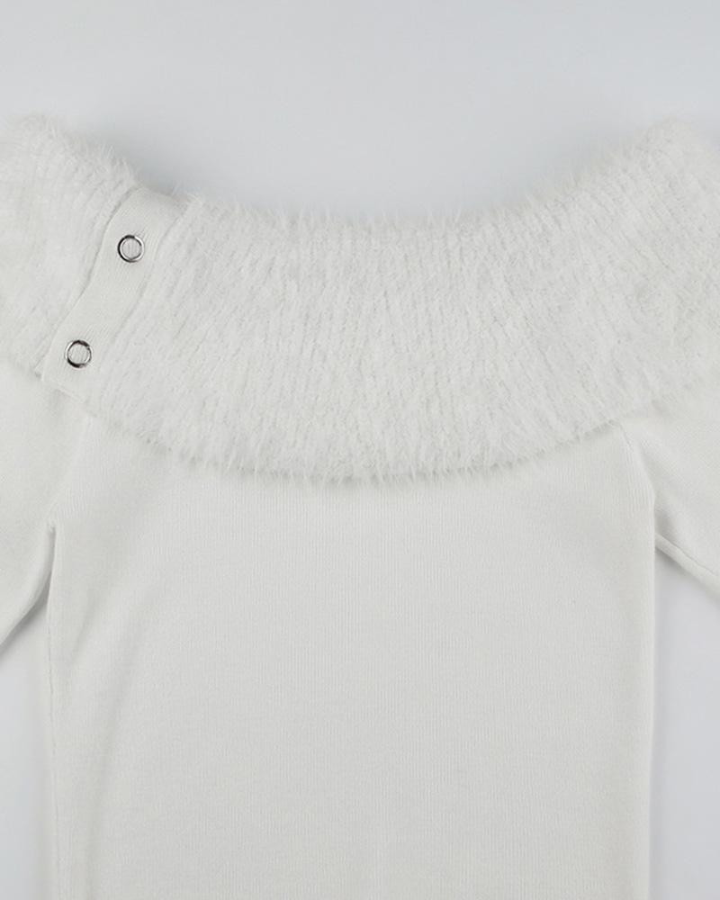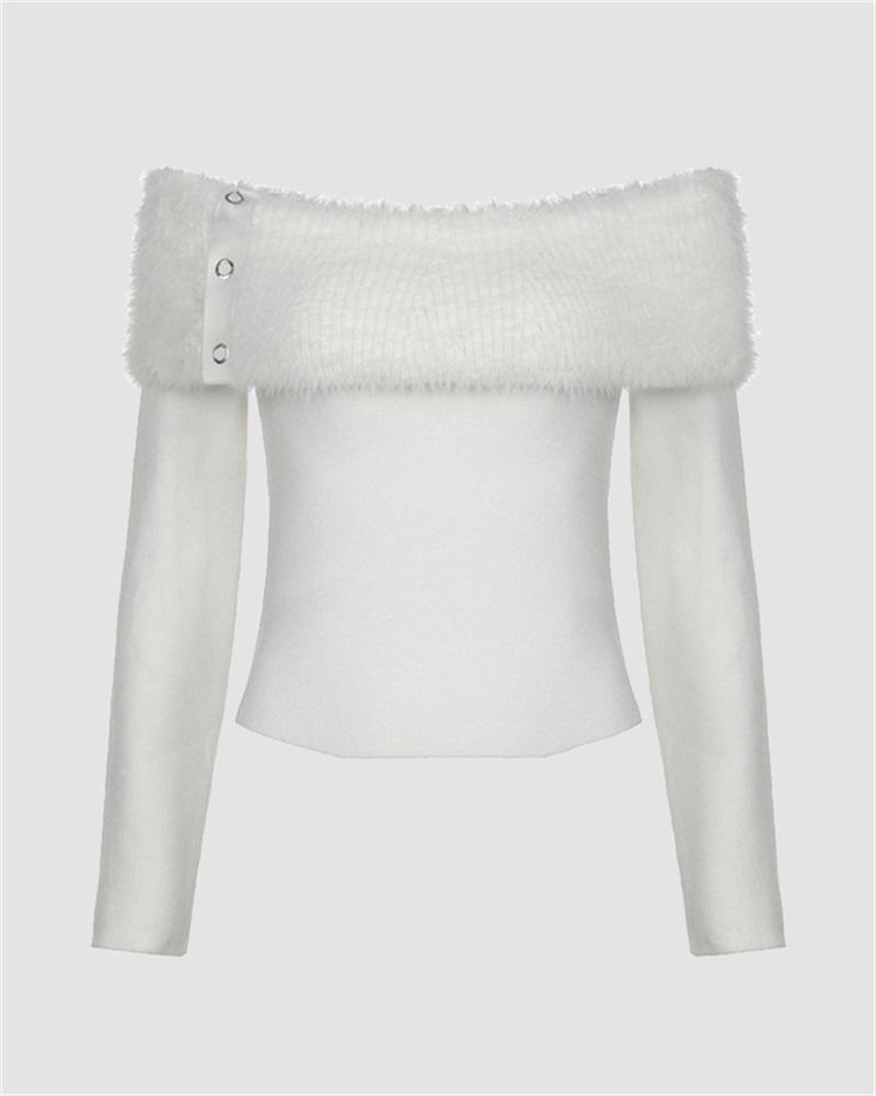Details: Off-shoulder top with fluffy design