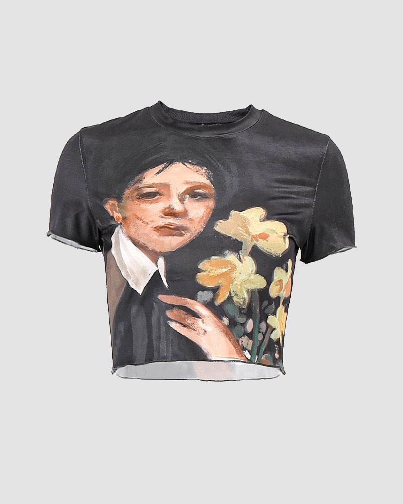 Details: Short-sleeve T-shirt with human graphical design