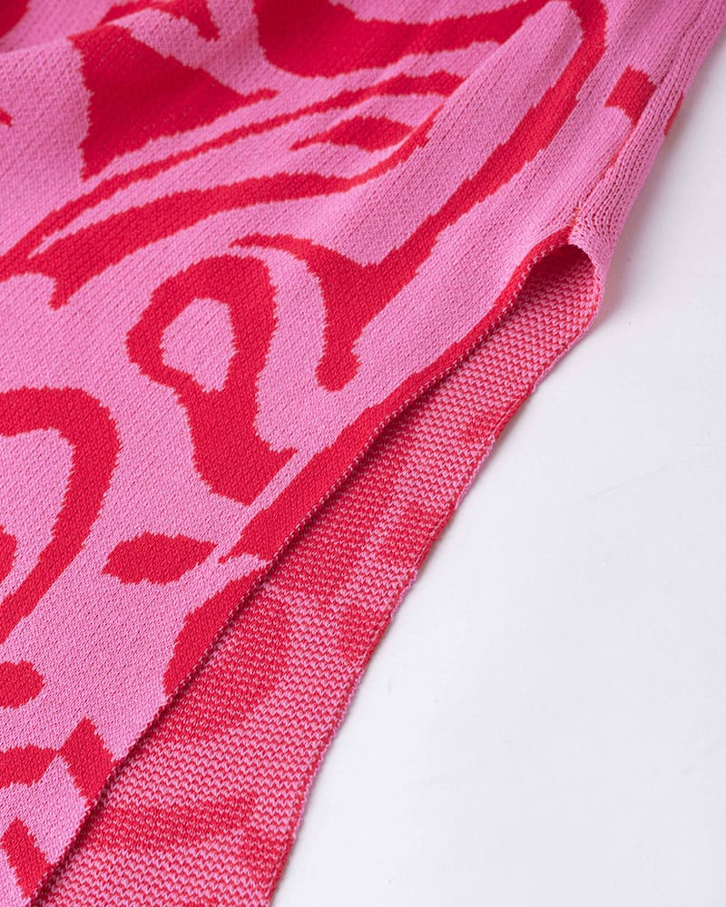 Details: Knitted long dress with cross-back design and watermarble pattern