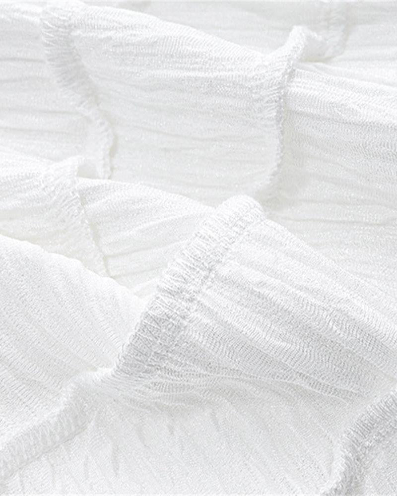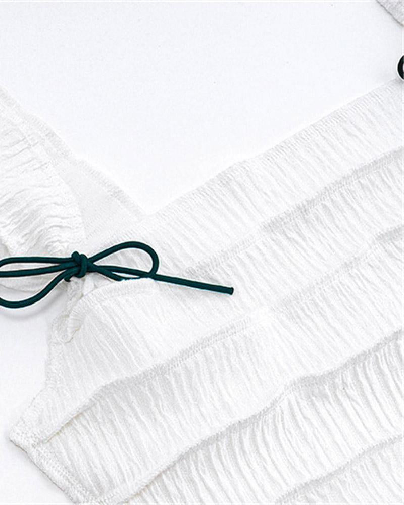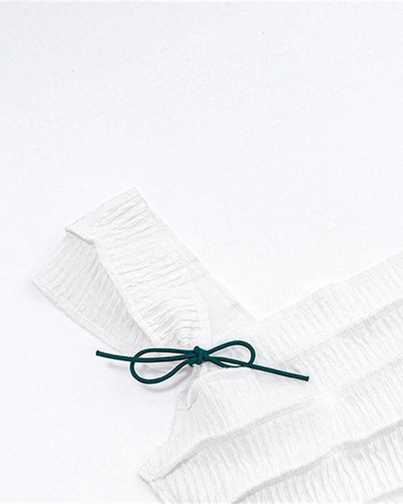 Details: Short-sleeve square-neck top with ribbon design