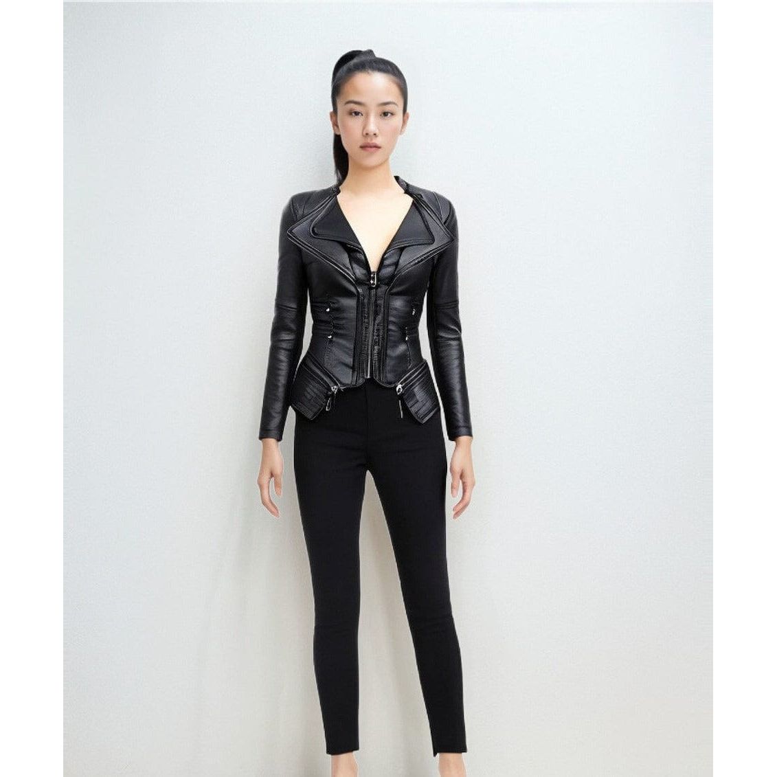 A meticulously crafted faux leather jacket engineered for style and comfort. Features a blazer-style collar. full front-zip closure. and detailed construction throughout. Exclusively for those who aren't afraid to stand out.