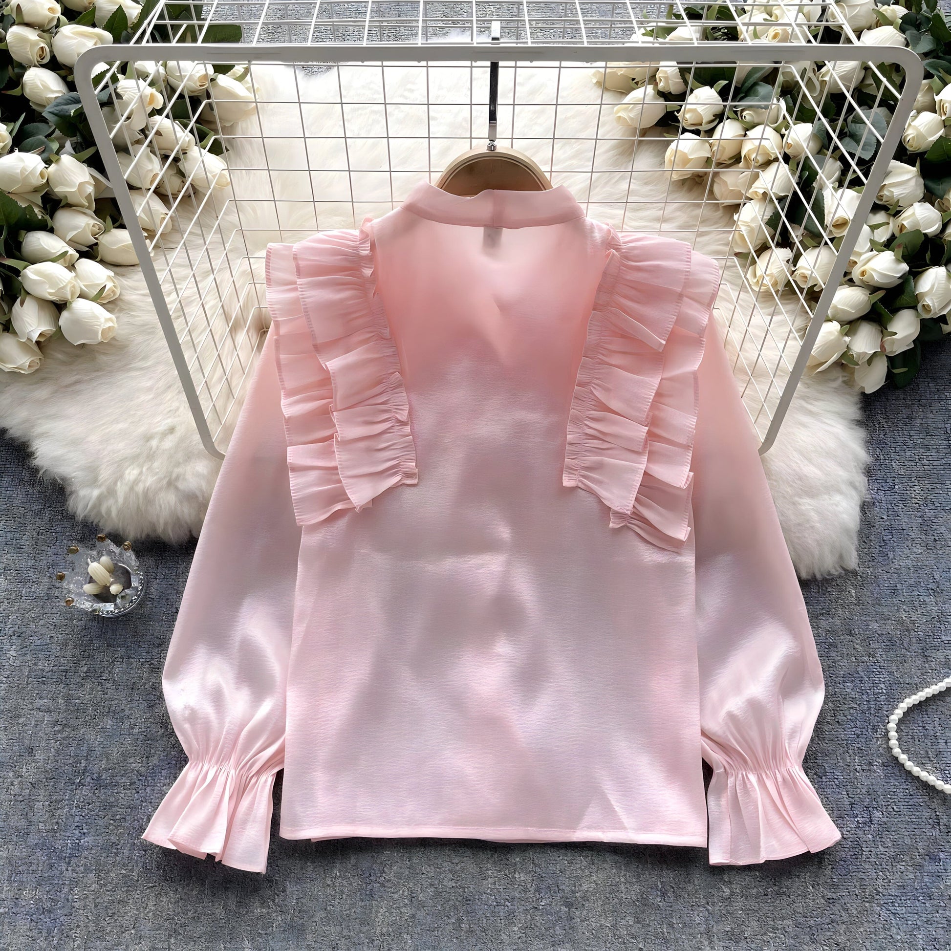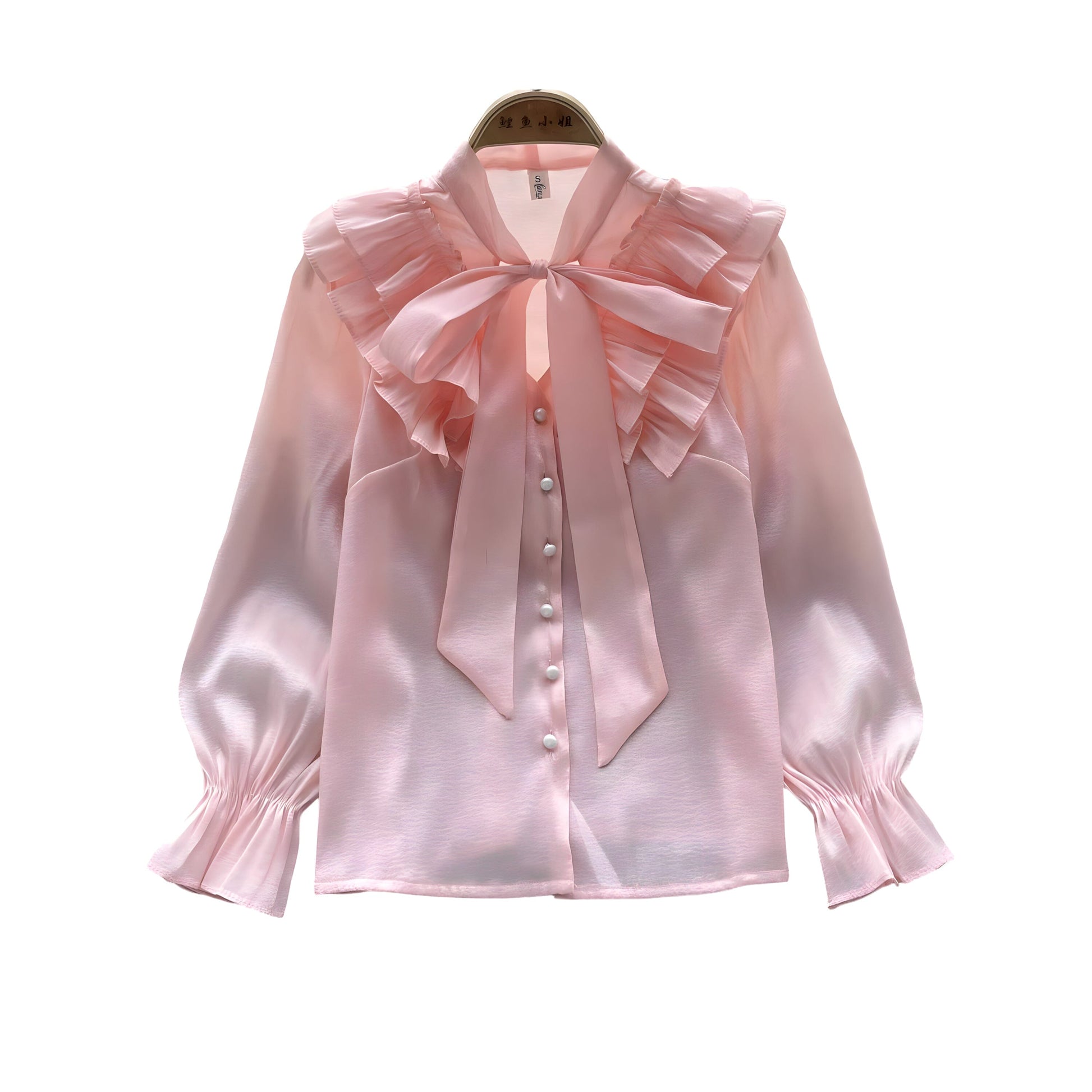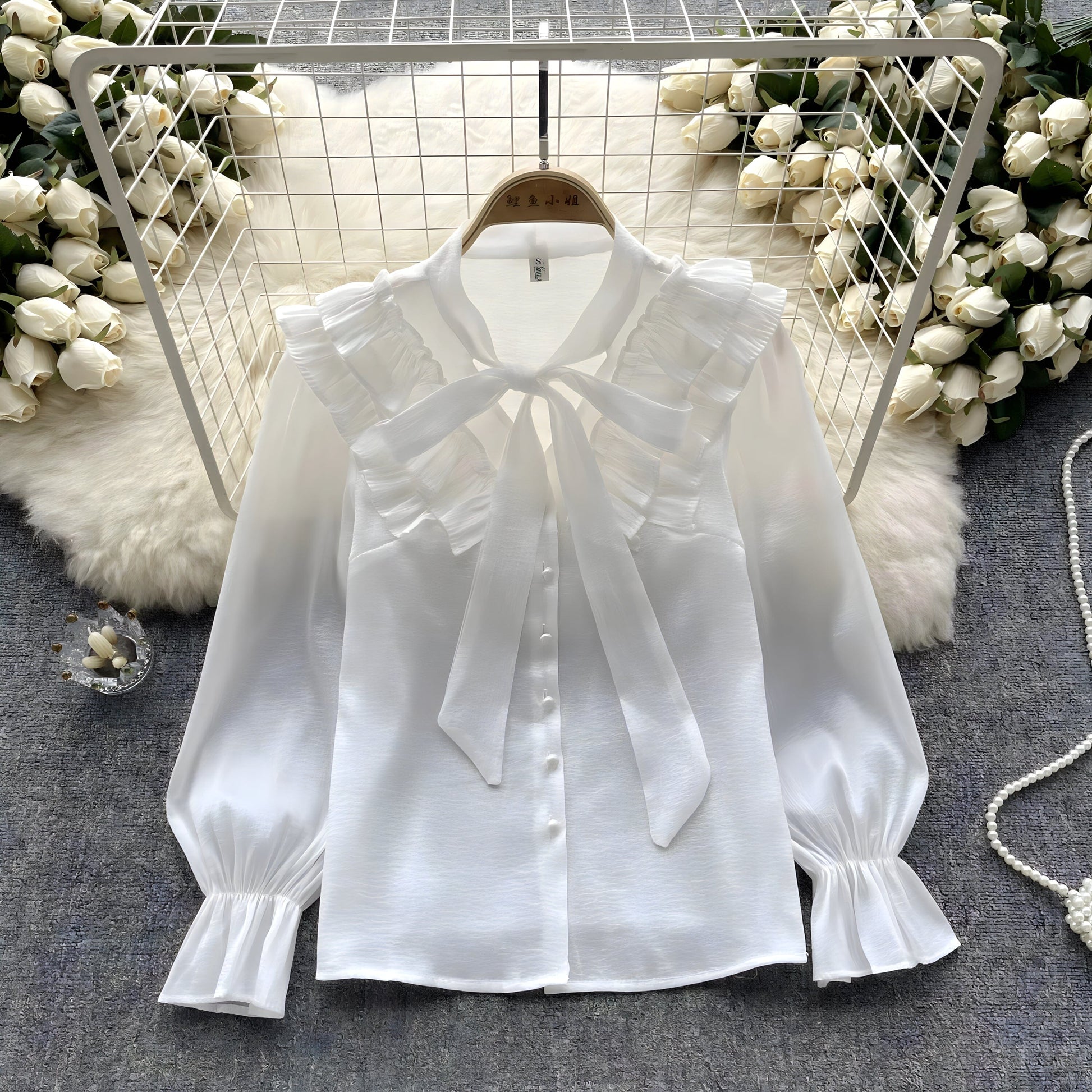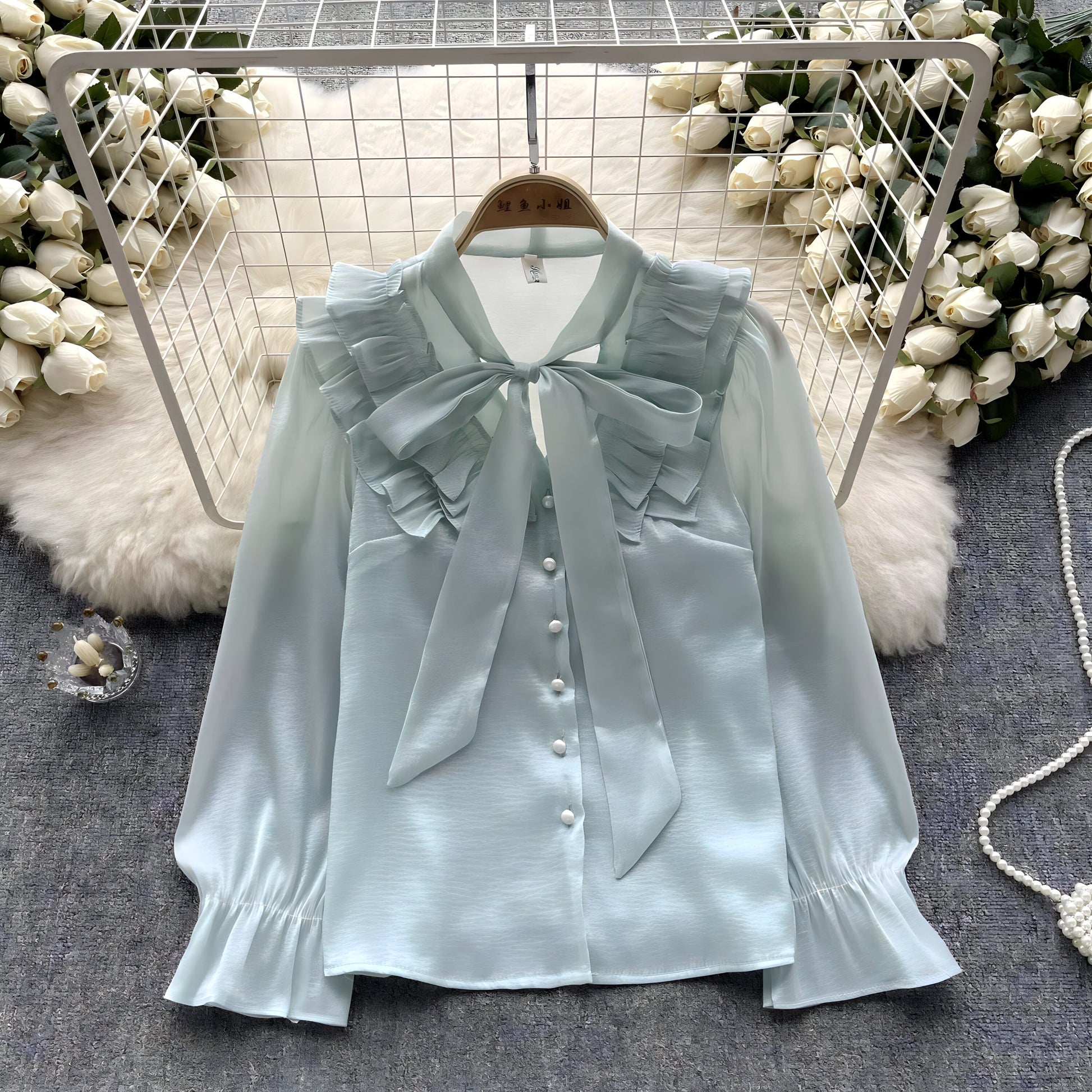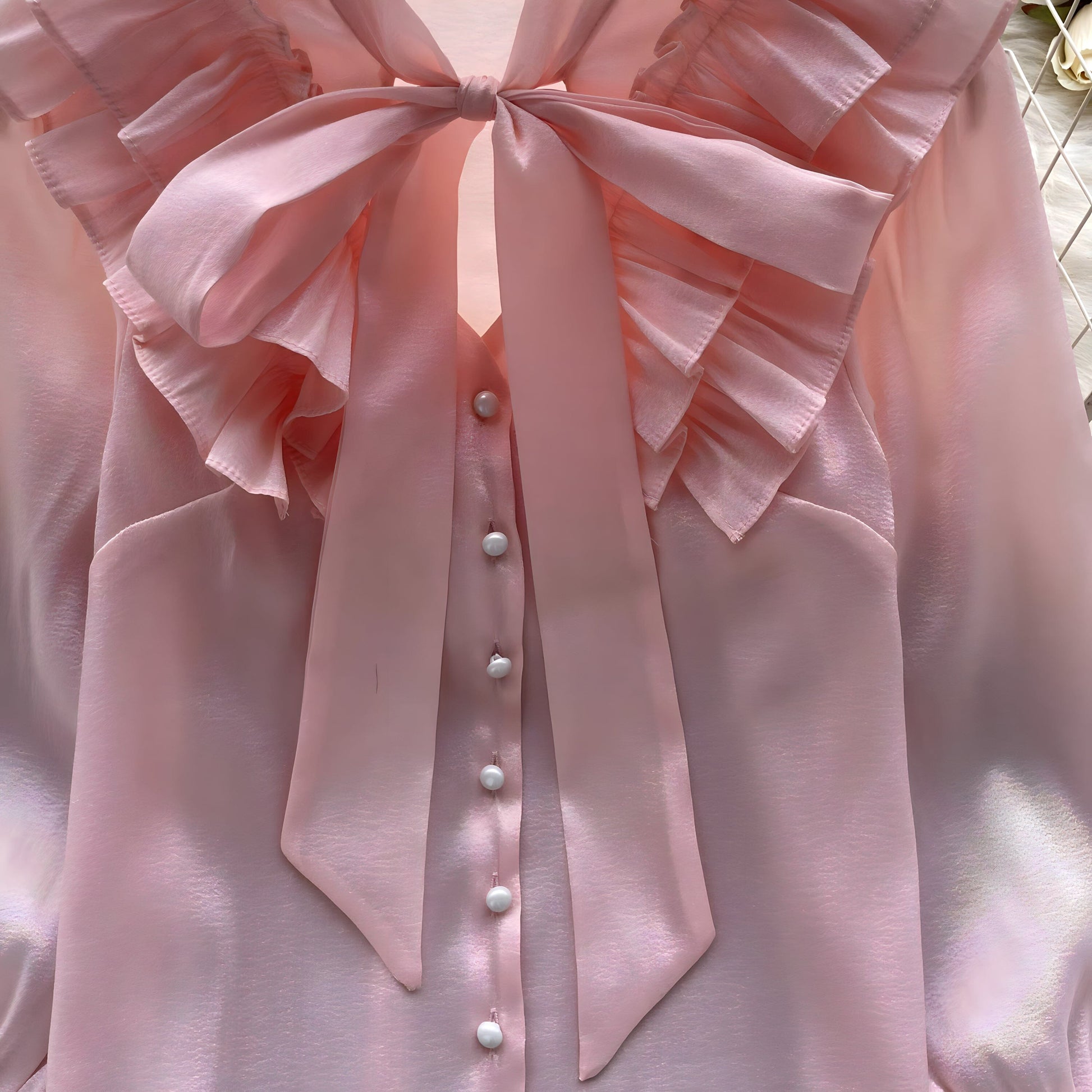 The Dorothea Bowknot Long Sleeve Ruffles Shirt - Multiple Colors