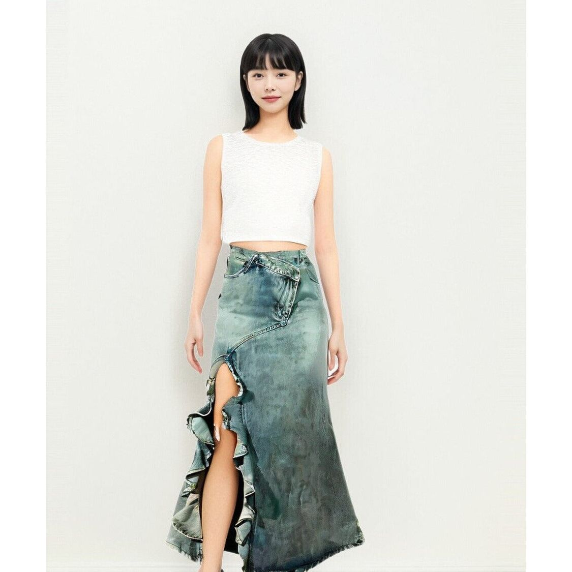 Perfect for an elegant evening or intimate affair. the "Hectoria" skirt blends elements of high-street fashion with casual styling. Featuring a premium polyester-denim fabric blend. high waist construction. and an alluring mermaid silhouette designed to accentuate every facet of your beauty. Embrace your allure.