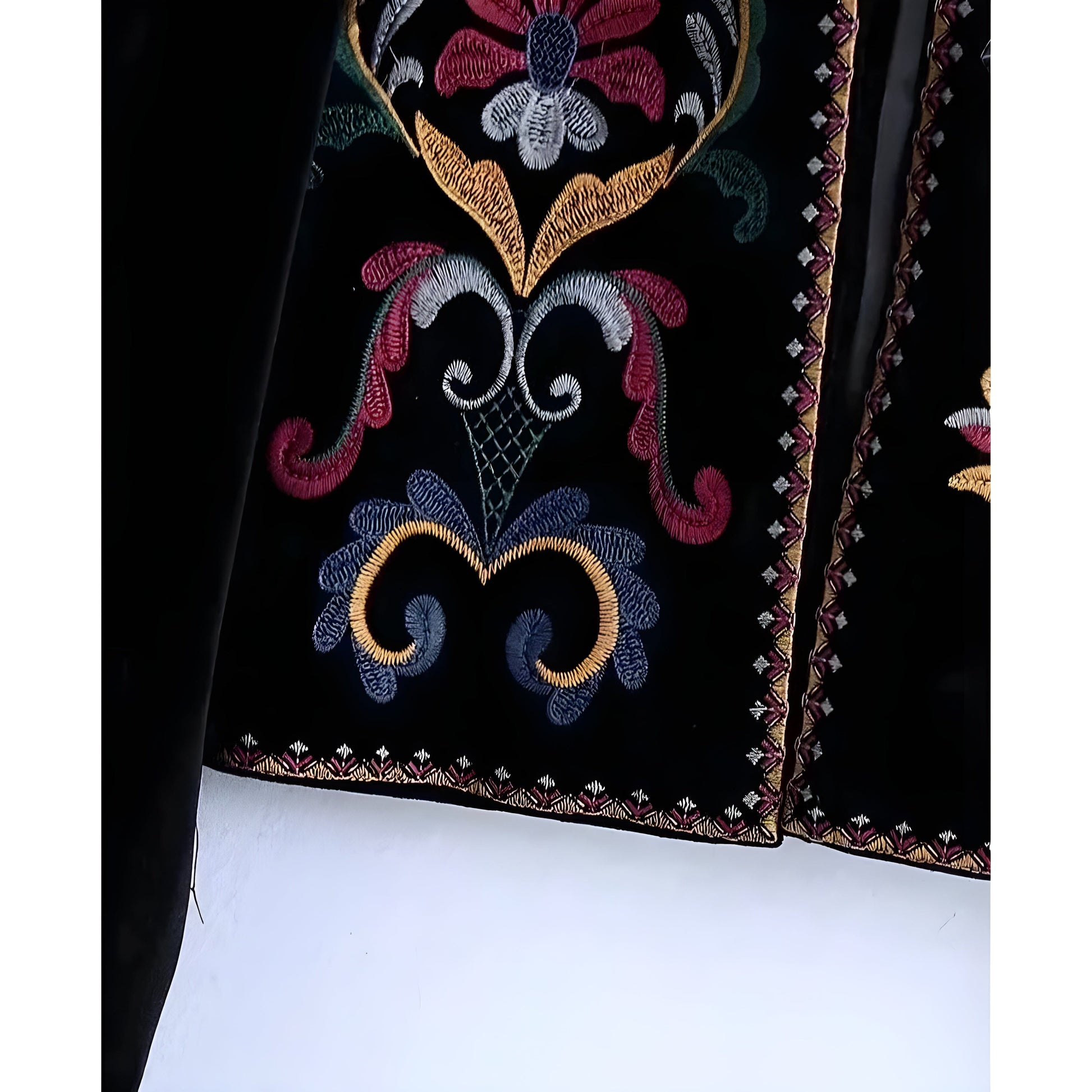 Designed with superior styling and craftsmanship. the "Iolanthe" long sleeve embroidered blouse offers a unique blend of high street fashion and casual comfort. Featuring a premium polyester-velvet fabric blend. layered striped pattern styling and spacious long-tail construction. Exude a new level of confidence.
