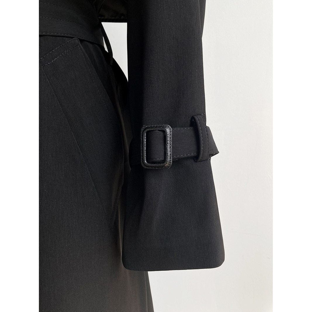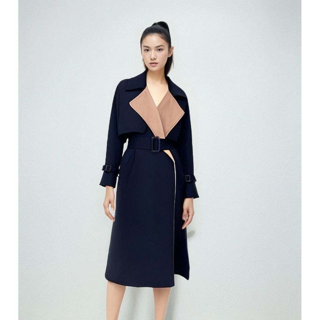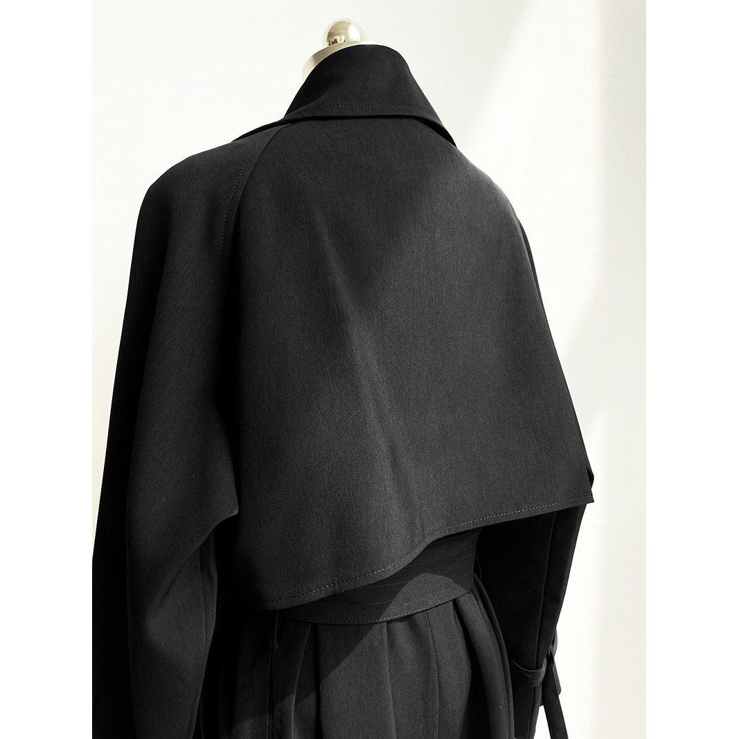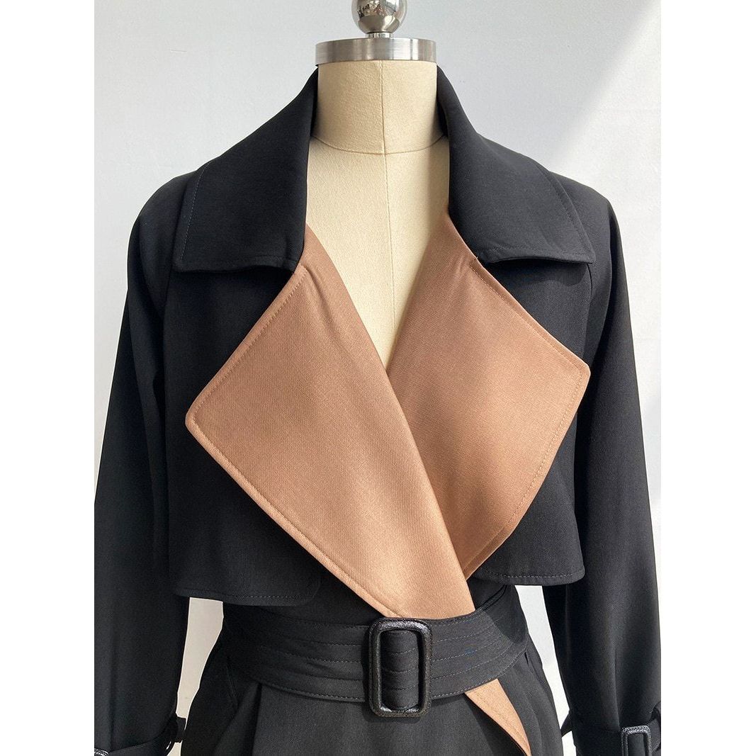 Don't miss out on this exclusive vintage piece that makes the perfect addition to any winter wardrobe. The "Joanne" trench coat features a turn down collar. sleeve sash accents. detailed spliced construction and accent belt for added versatility and styling. Perfect - dressed up or down. you won't want to leave home without this.