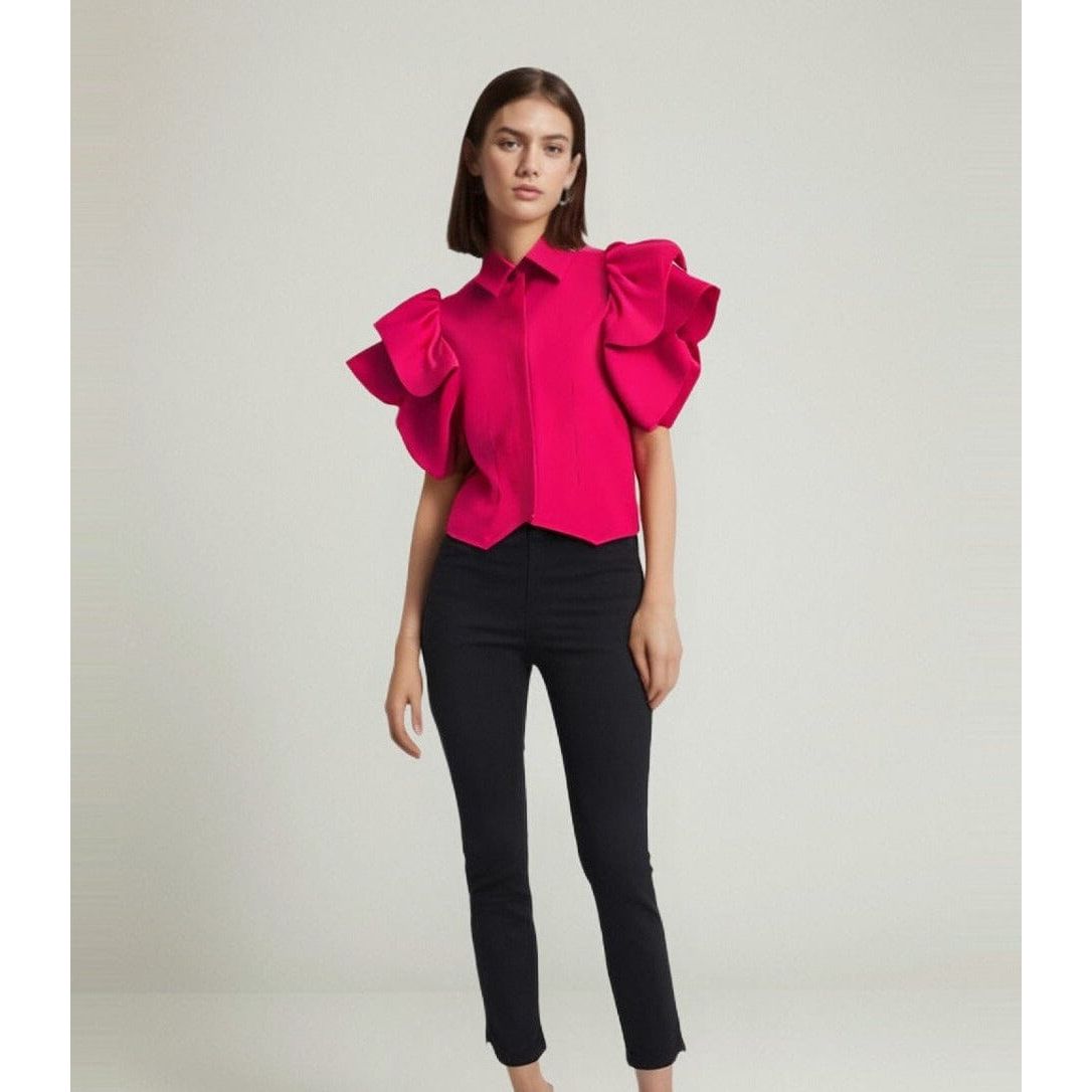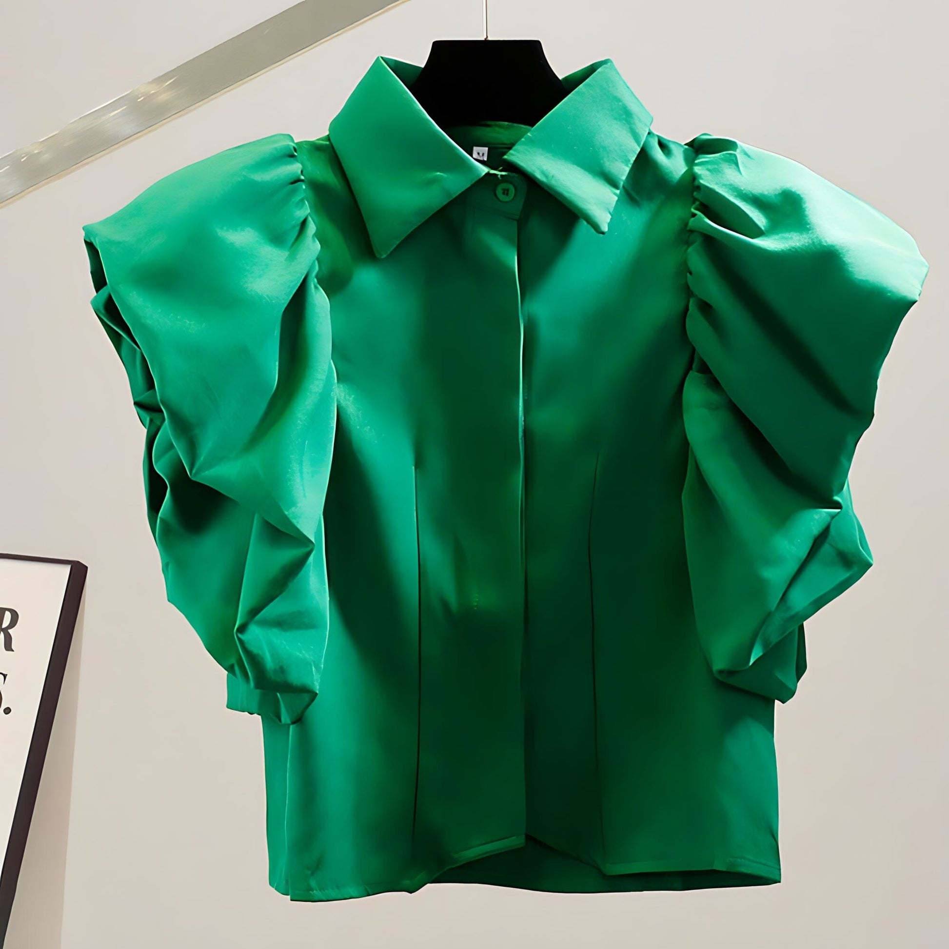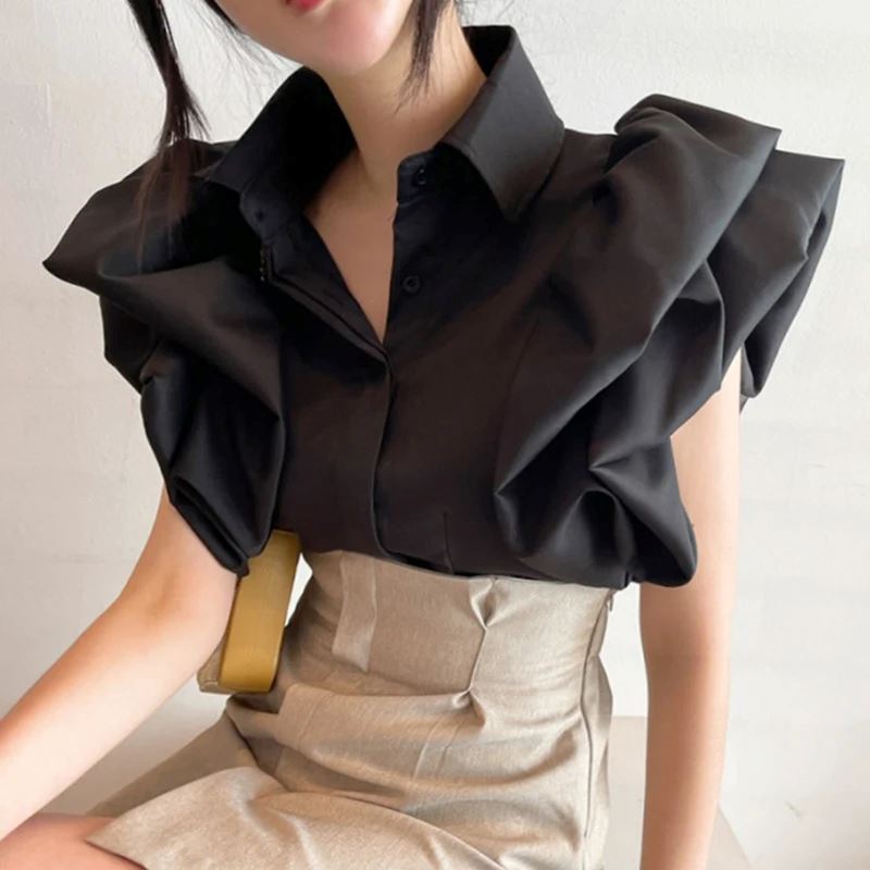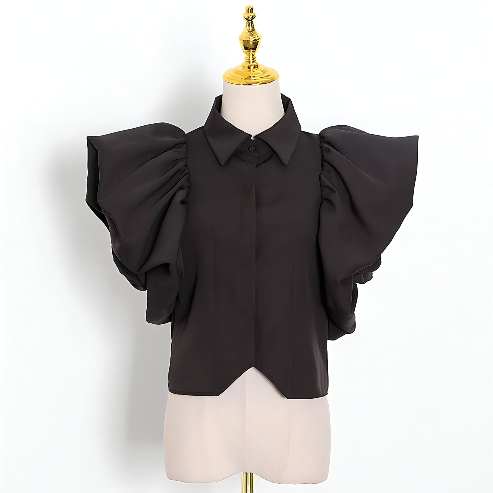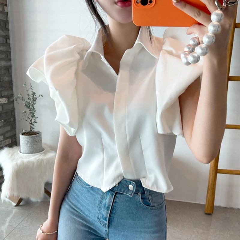 The "Mavis" short sleeve blouse offers a unique blend of vintage high-street fashion and casual chic that you won't find anywhere else. Comprised of a premium cotton-polyester blend. ruffled butterfly sleeves. and lightweight construction for lasting comfort and support. This piece is nothing short of a wardrobe essential. Elevate your aesthetic.