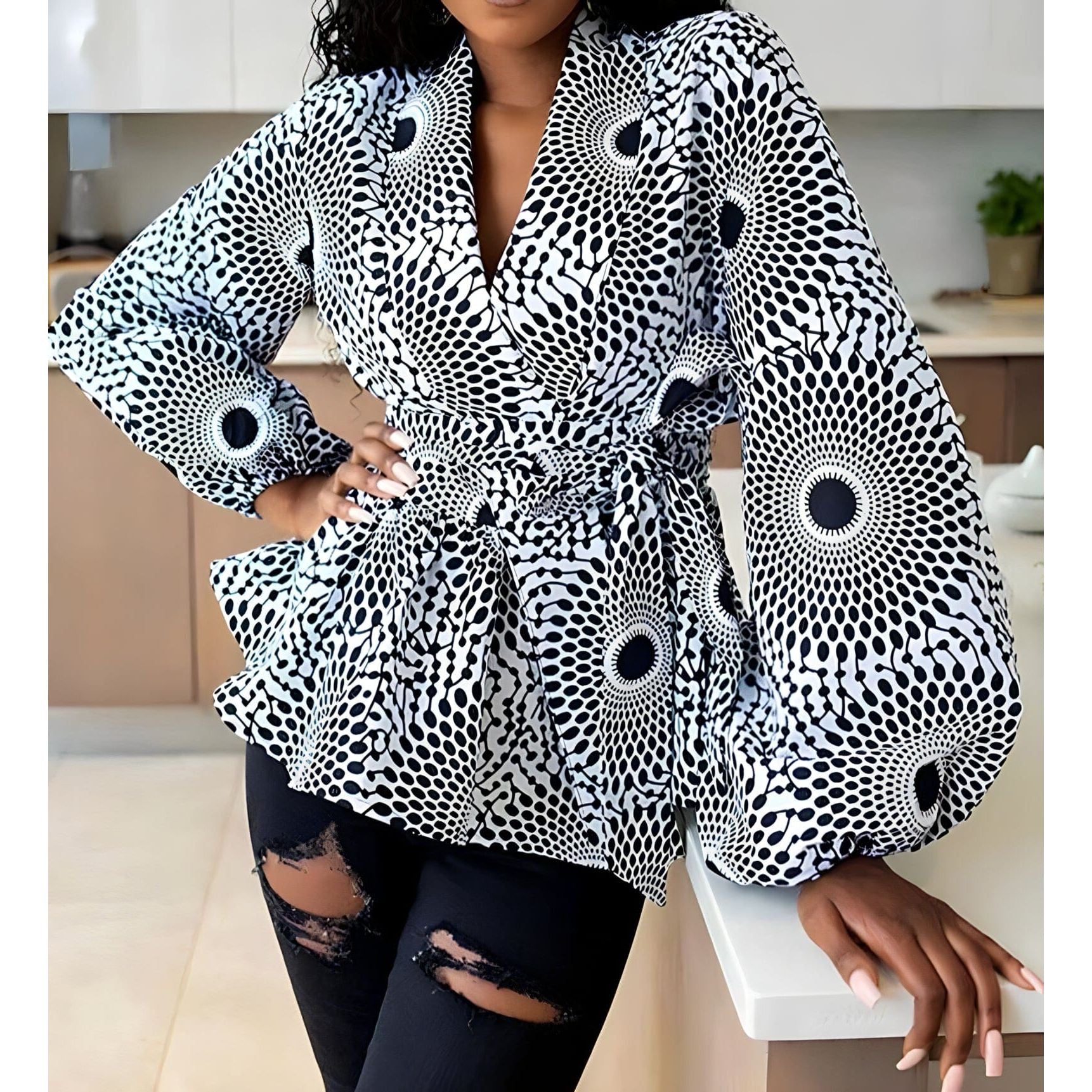 The Sabina V Neck Printed Shirt