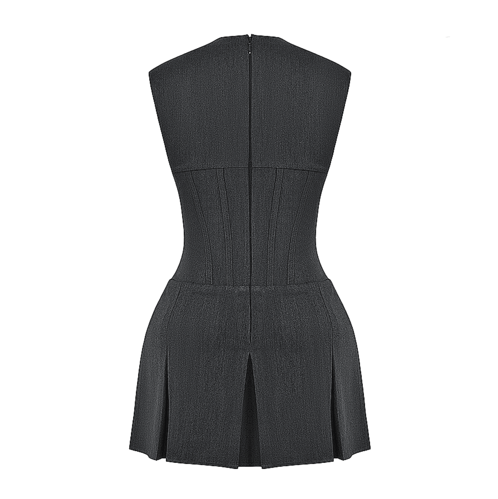 Elevate your style with the Corset Mini Dress. This stunning dress features a structured corset bodice that accentuates your waist and enhances your silhouette. The flattering mini length is perfect for showcasing your favorite heels. Made from high-quality fabric. the Corset Mini Dress offers both comfort and elegance. The adjustable straps ensure a customized fit. while the intricate detailing adds a touch of sophistication. The dress is versatile enough to be worn for both casual and formal occasions. making it a must-have in your wardrobe.